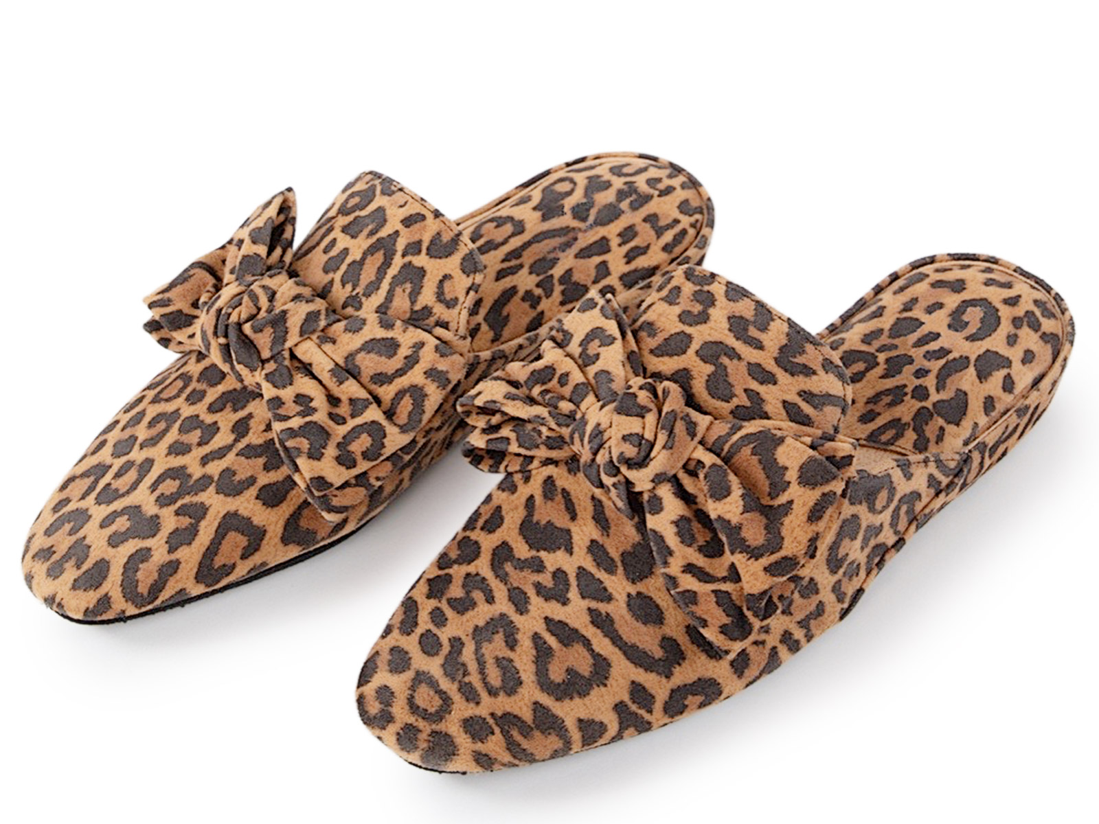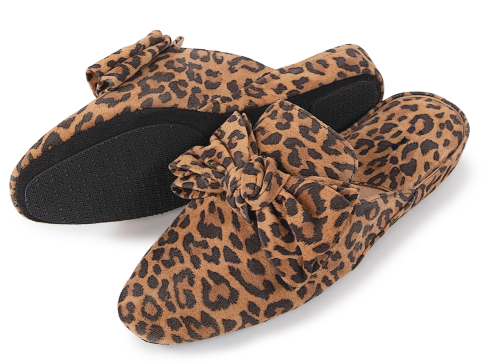 Unwind every day with bliss underfoot. These slippers are beautifully crafted from premium suede and lined with soft, matching suede—for sweet serenity in every step. The animal print design, accented with an elegant bow, is bold, modern, and unapologetically chic. Finished with suede and rubber outsoles, they provide the support and confidence you need, from the bedroom to the bathroom. Made in Spain.